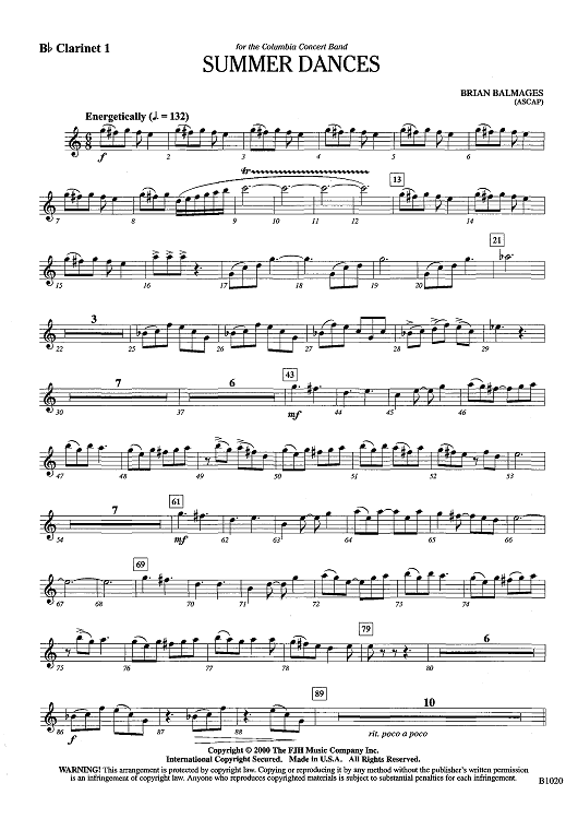 Digital Sheet Music for Summer Dances - Bb Clarinet 1 by Brian Balmages scored for Concert Band; id:442569