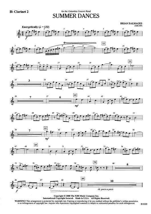 Digital Sheet Music for Summer Dances - Bb Clarinet 2 by Brian Balmages scored for Concert Band; id:442570