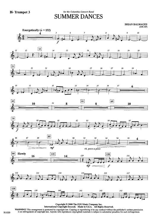 "Summer Dances - Bb Trumpet 3" Sheet Music by Brian Balmages