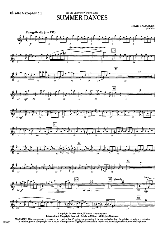 Digital Sheet Music for Summer Dances - Eb Alto Sax 1 by Brian Balmages scored for Concert Band; id:442573
