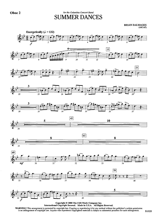 "Summer Dances - Oboe 2" Sheet Music by Brian Balmages