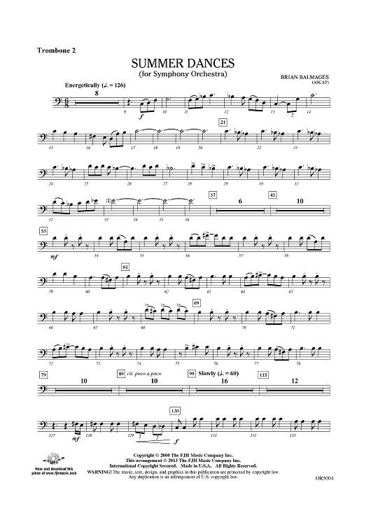 Digital Sheet Music for Summer Dances - Trombone 2 by Brian Balmages scored for Symphony Orchestra; id:436831