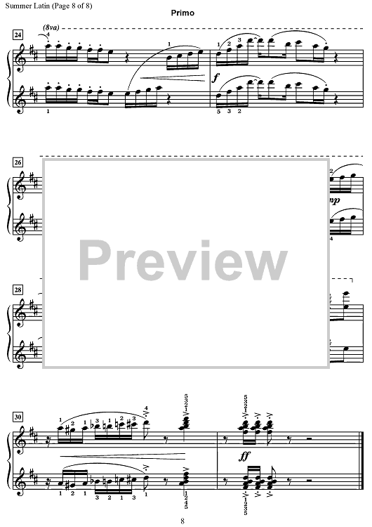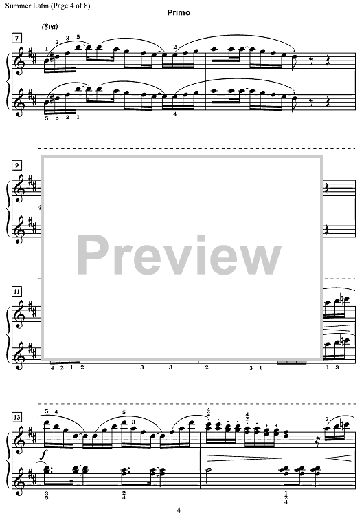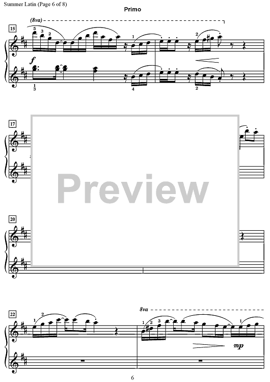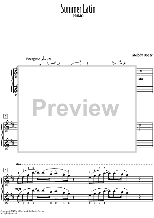 The Music Teachers National Association commissioned Melody Bober to write a collaborative composition for piano and two instruments, suitable for high school performers. Suite in Season for Piano, Flute and Bassoon (#39120) was premiered at the 2012 conference in New York City. Written in four movements, each movement represents a season and has a corresponding style that fits the mood. Shortly after finishing the trio, Melody arranged the suite for piano duet to allow other students to experience the variety of musical styles and genres used in the piece.