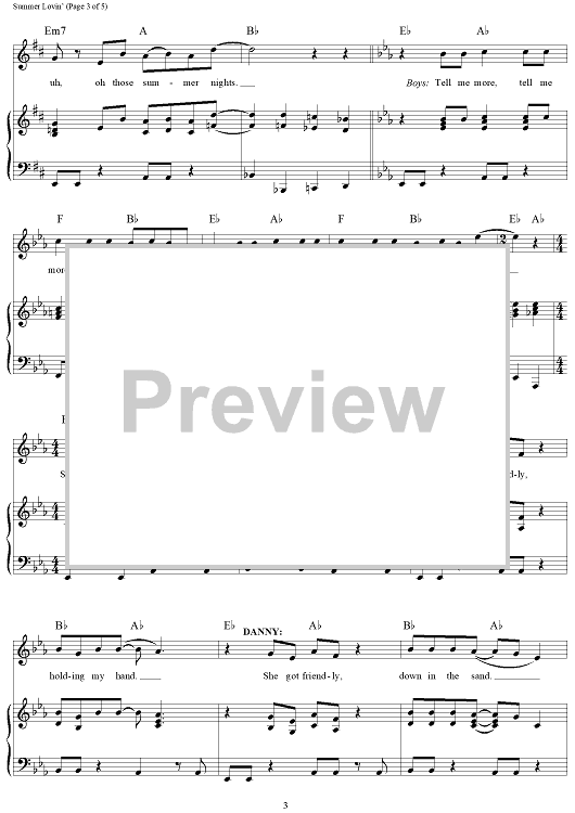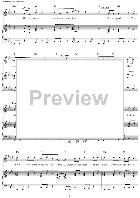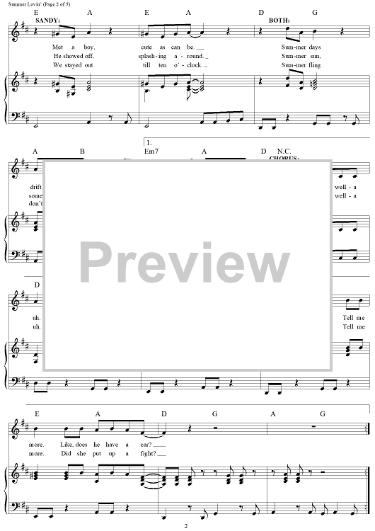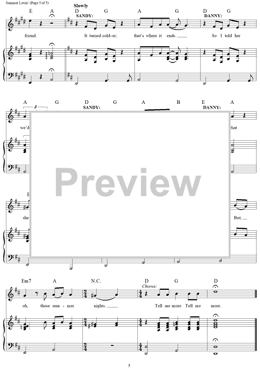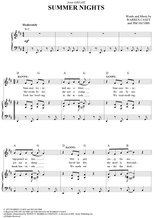 Digital Sheet Music for Summer Nights by Olivia Newton-John, John Travolta, Warren Casey, Jim Jacobs scored for Piano/Vocal/Chords; id:385779