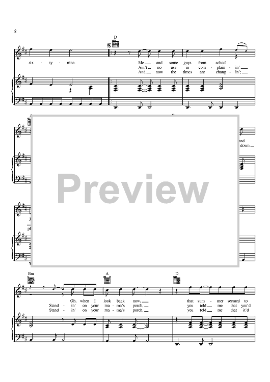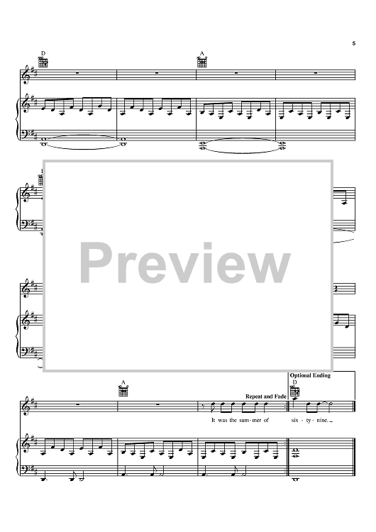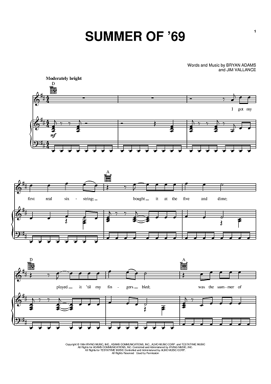 Digital Sheet Music for Summer Of '69 by Bryan Adams, Jim Vallance scored for Piano/Vocal/Chords; id:367508