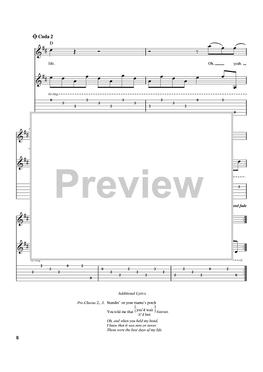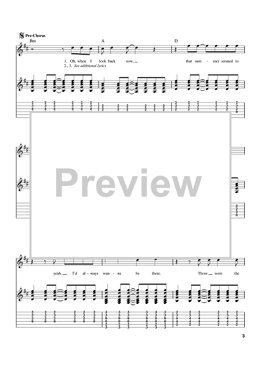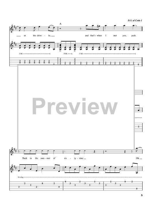 Digital Sheet Music for Summer Of '69 by Bryan Adams, Jim Vallance scored for Guitar Tab; id:374183