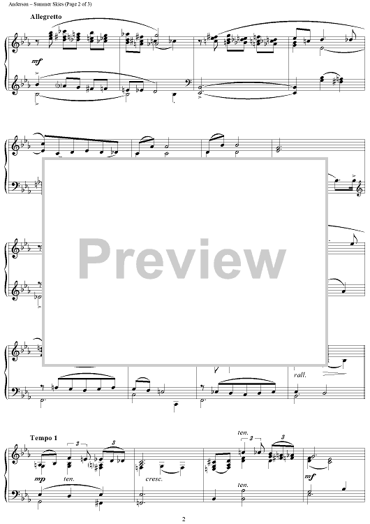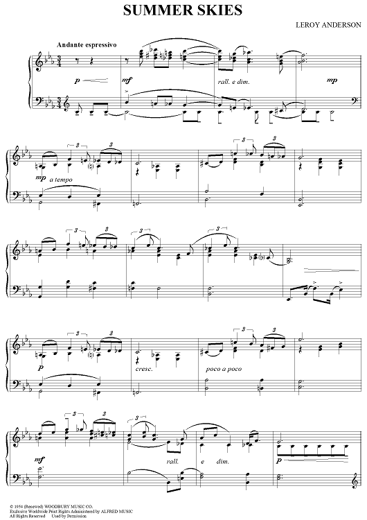 Digital Sheet Music for Summer Skies by Leroy Anderson scored for Piano Solo; id:321698