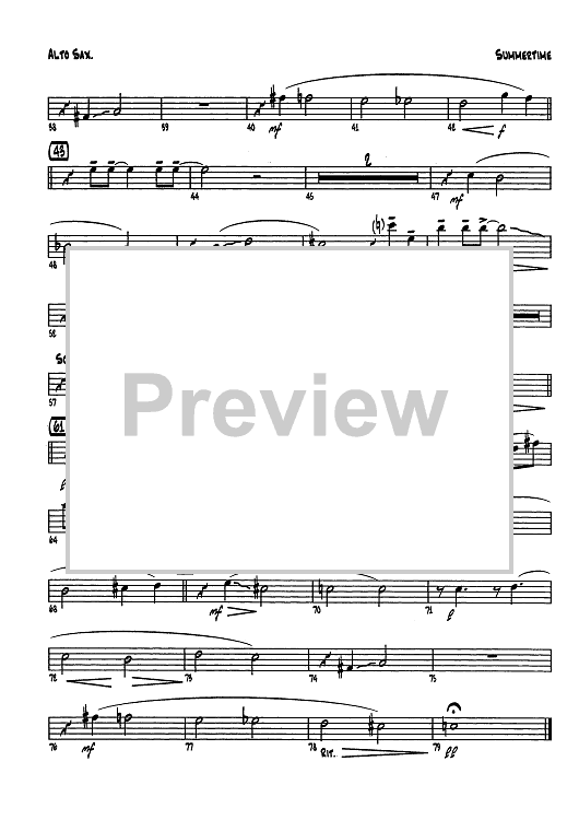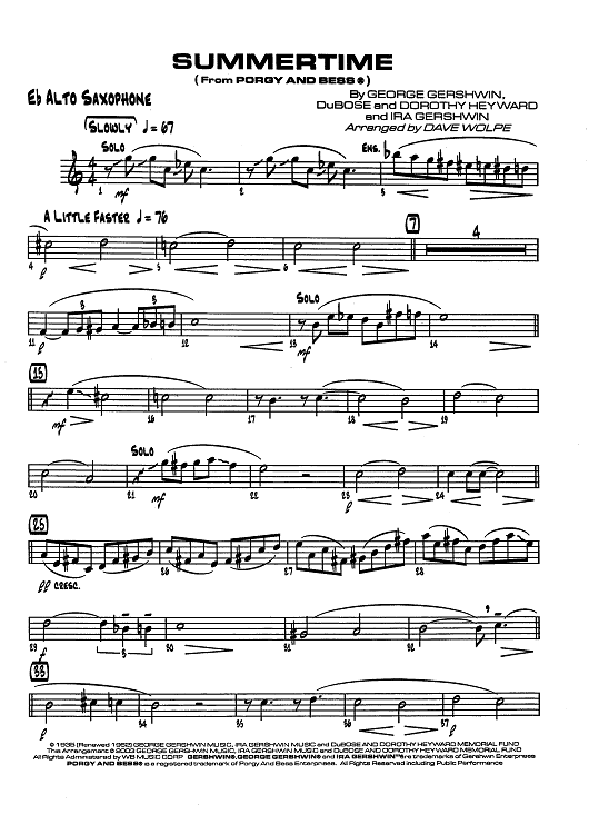 Digital Sheet Music for Summertime (From Porgy And Bess) - Eb Alto Sax by , George Gershwin, Ira Gershwin, Dave Wolpe, Dubose & Dorothy Heyward scored for Jazz Ensemble; id:437541