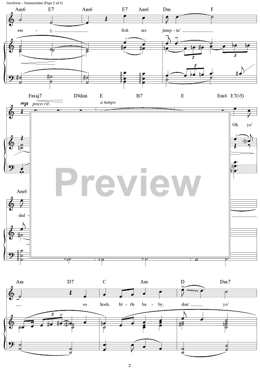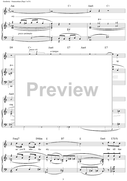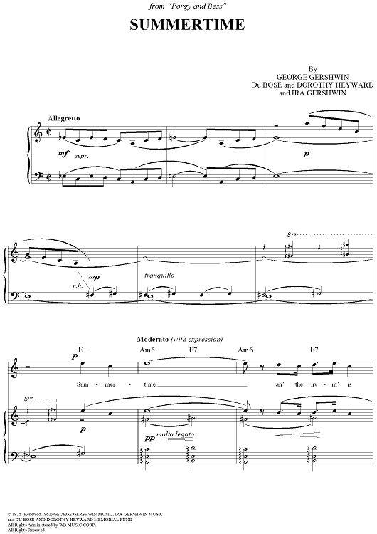 Digital Sheet Music for Summertime by George Gershwin, Ira Gershwin, Dubose & Dorothy Heyward scored for Piano/Vocal/Chords; id:109006