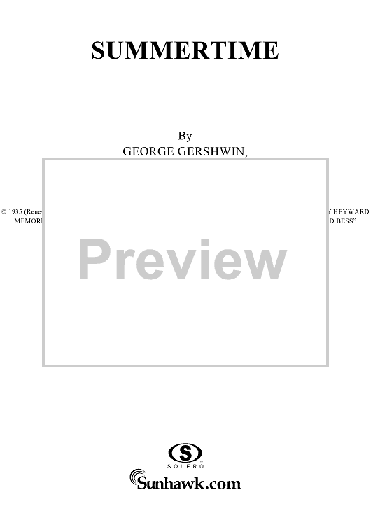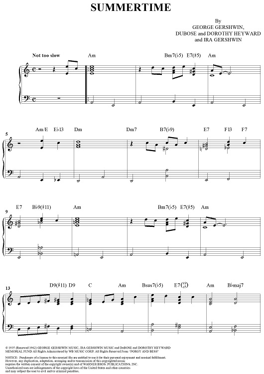 Digital Sheet Music for Summertime by George Gershwin, Ira Gershwin, Lou Stein, Dubose & Dorothy Heyward scored for Piano Solo; id:287031