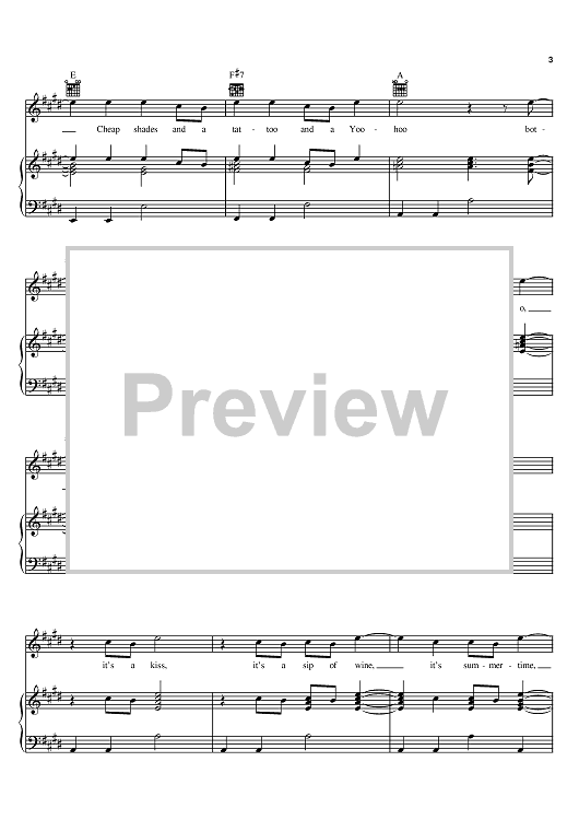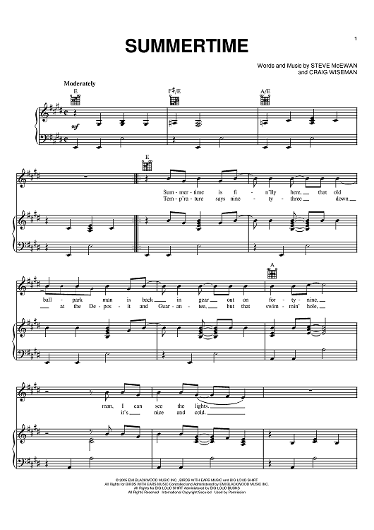 Digital Sheet Music for Summertime by Kenny Chesney, Craig Wiseman, Steve McEwan scored for Piano/Vocal/Chords; id:389006