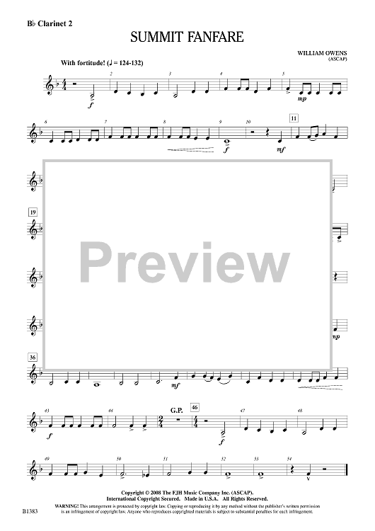 "Summit Fanfare - Bb Clarinet 2" Sheet Music by William Owens