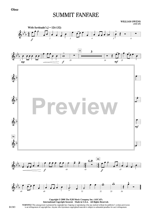 "Summit Fanfare - Oboe" Sheet Music by William Owens