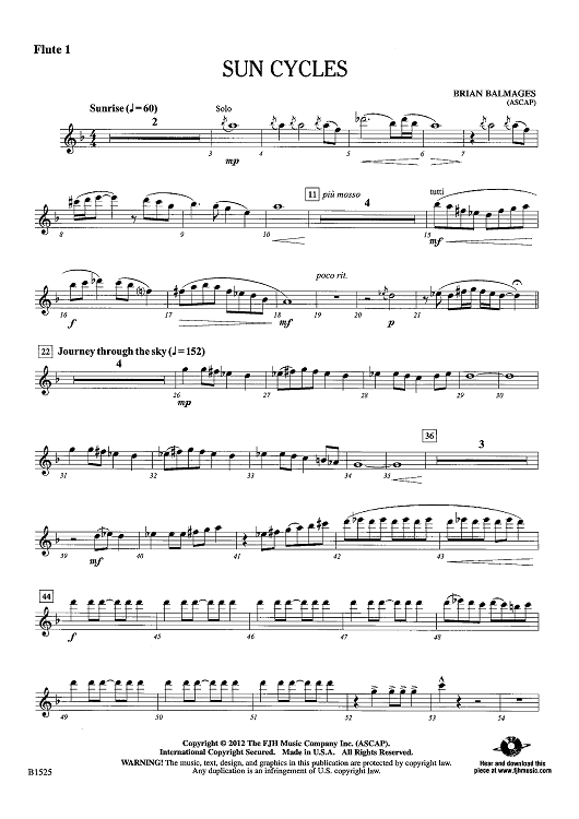 Digital Sheet Music for Sun Cycles - Flute 1 by Brian Balmages scored for Concert Band; id:442424
