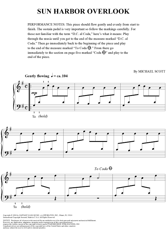 Digital Sheet Music for Sun Harbor Overlook by Michael Scott scored for Easy Piano; id:257637