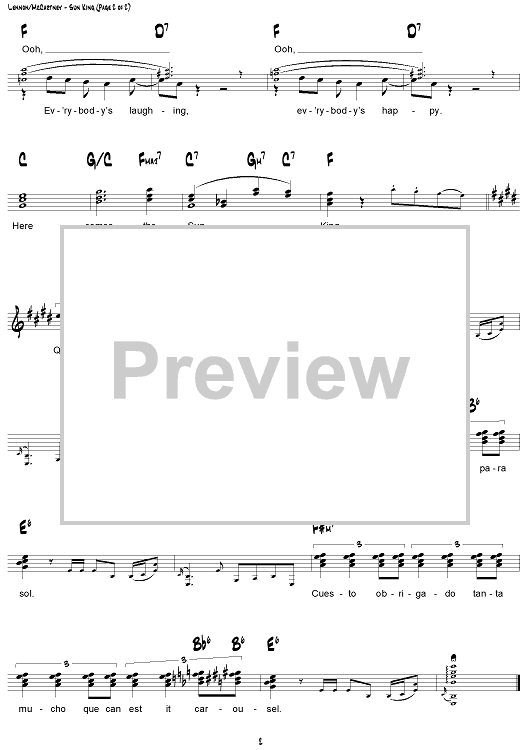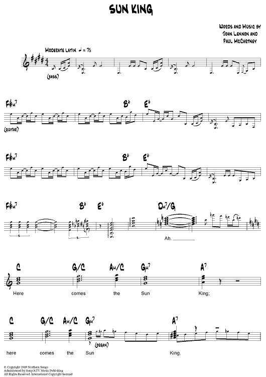 Digital Sheet Music for Sun King by Paul McCartney, The Beatles, John Lennon scored for Lead Sheet; id:361948