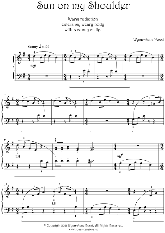 "Sun on my Shoulder" Sheet Music by Wynn-Anne Rossi