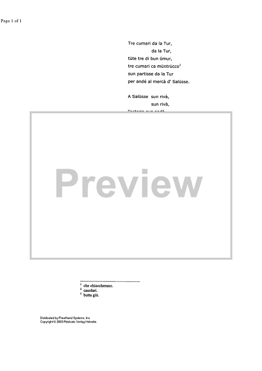 "Sun partisse da la Tur - Lyrics" Sheet Music by Paolo Bon