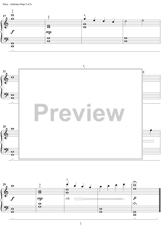 Digital Sheet Music for Sunbeams by Barbara Harry scored for Piano Solo; id:292859