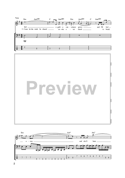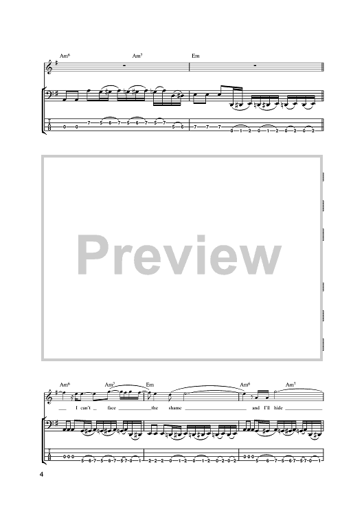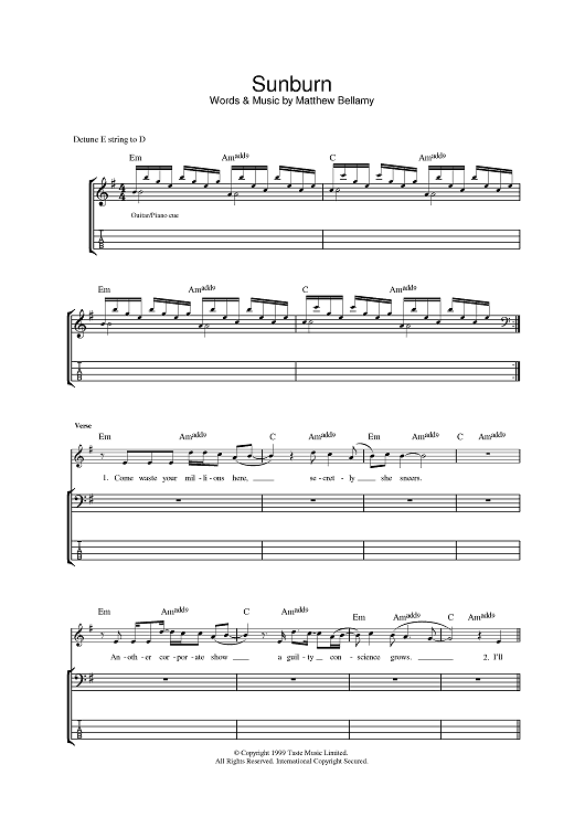 Digital Sheet Music for Sunburn by Matthew Bellamy, Muse scored for Bass Tab; id:383396