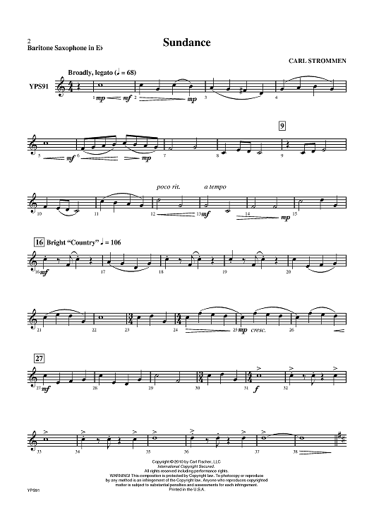 "Sundance - Baritone Sax" Sheet Music by Carl Strommen