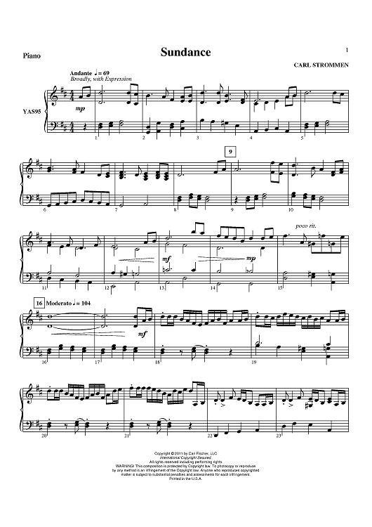 "Sundance - Piano" Sheet Music by Carl Strommen
