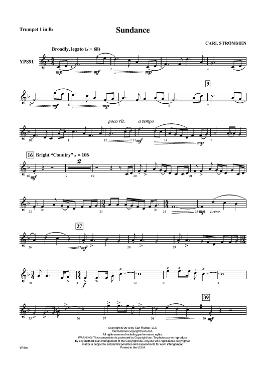 "Sundance - Trumpet 1 in Bb" Sheet Music by Carl Strommen