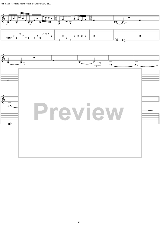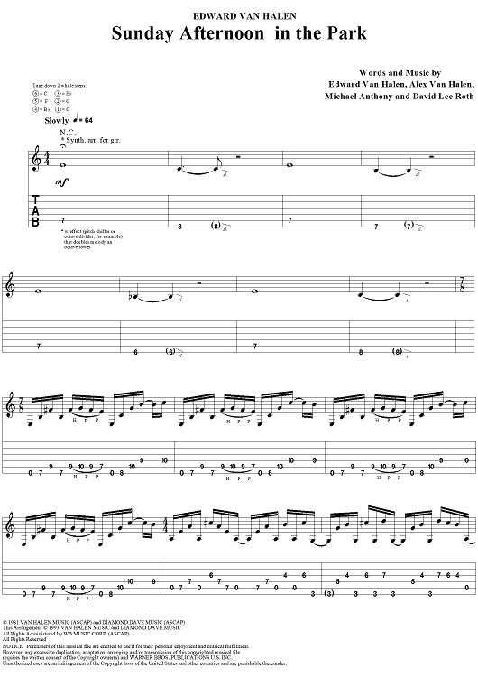 Digital Sheet Music for Sunday Afternoon in the Park by Eddie Van Halen, David Lee Roth, Michael Anthony, Alex Van Halen, Van Halen scored for Guitar Tab/Vocal; id:111588