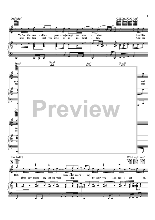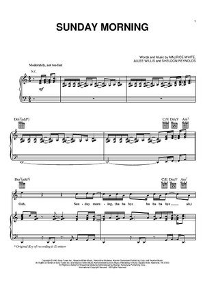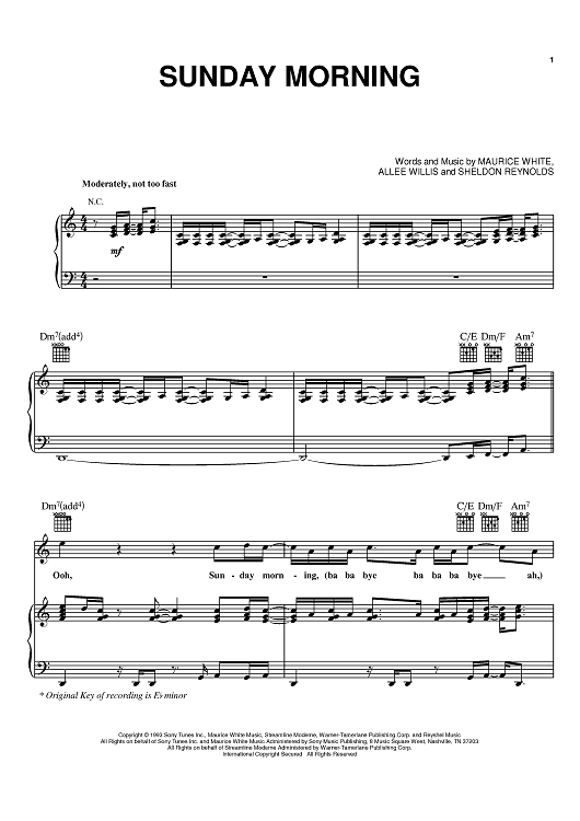 Digital Sheet Music for Sunday Morning by Maurice White, Allee Willis, Earth, Wind & Fire, Sheldon Reynolds scored for Piano/Vocal/Chords; id:368623