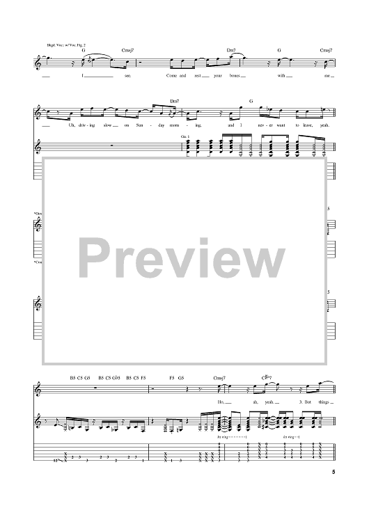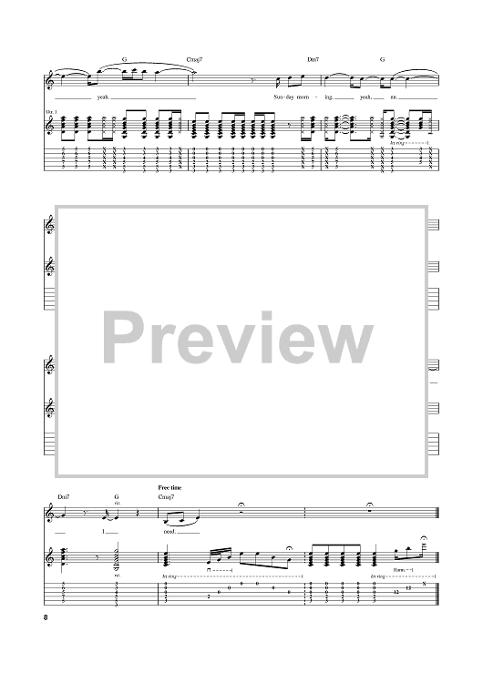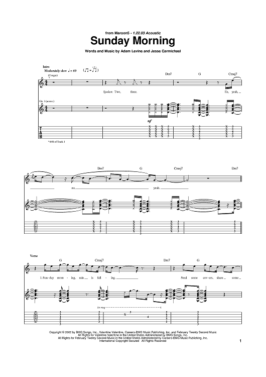 Digital Sheet Music for Sunday Morning by Adam Levine, Jesse Carmichael, Maroon 5 scored for Guitar Tab; id:382276
