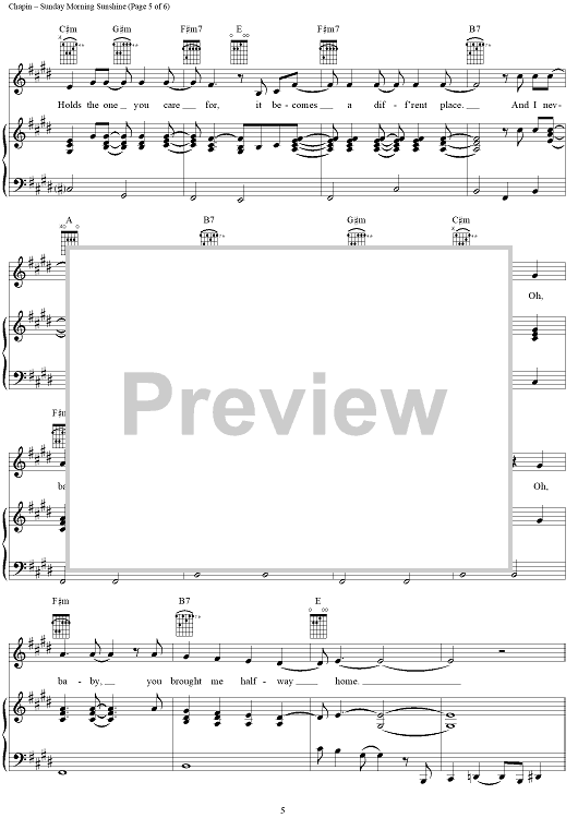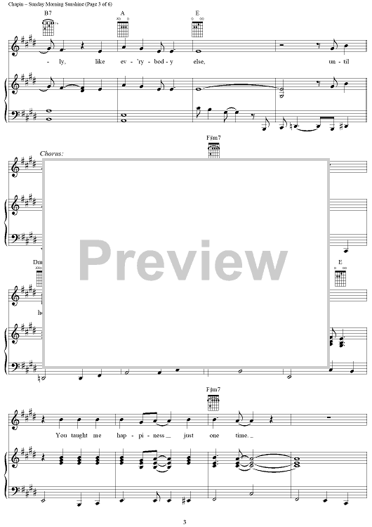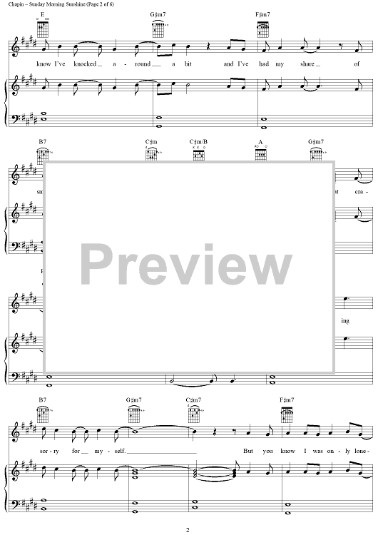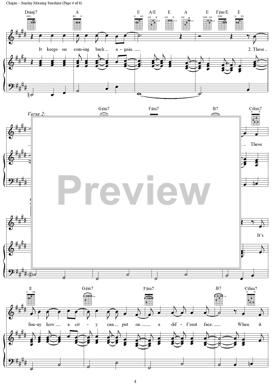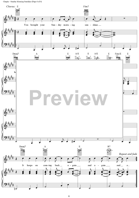 Digital Sheet Music for Sunday Morning Sunshine by Harry Chapin scored for Piano/Vocal/Chords; id:417441