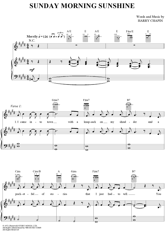 "Sunday Morning Sunshine" Sheet Music by Harry Chapin