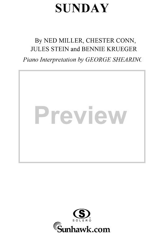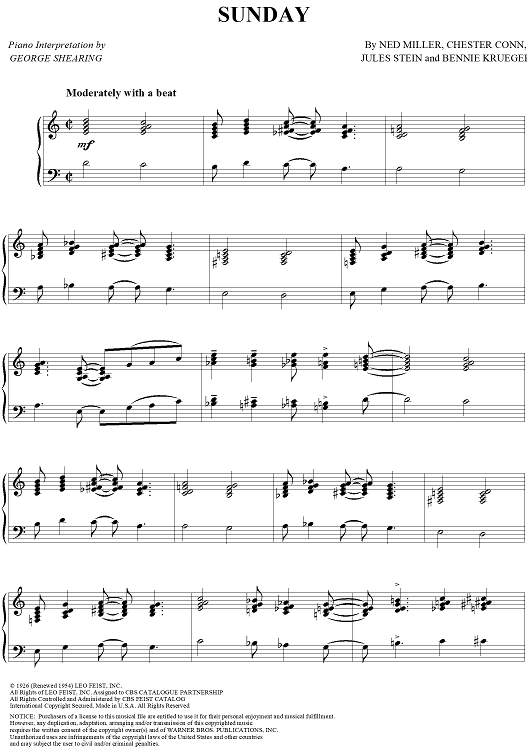 Digital Sheet Music for Sunday by Jule Styne, George Shearing, Bennie Kreuger, Chester Conn, Ned Miller scored for Piano Solo; id:120155