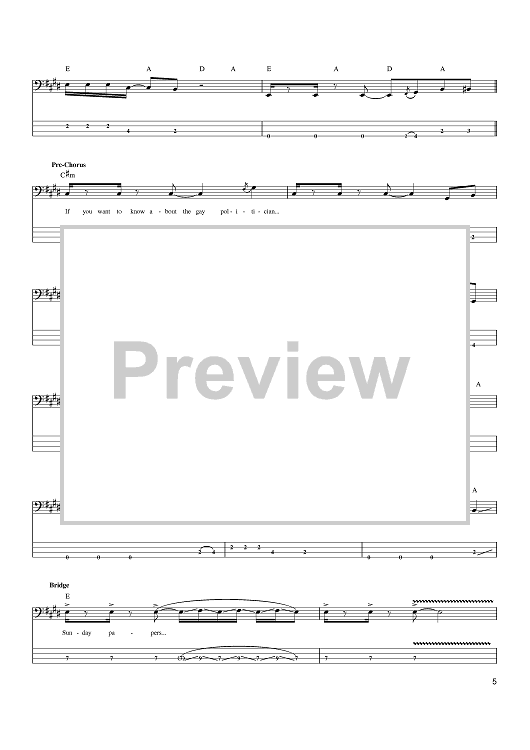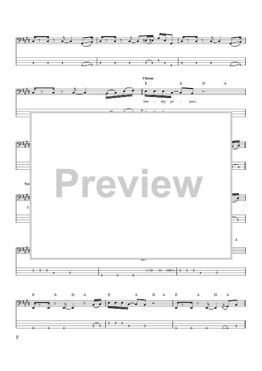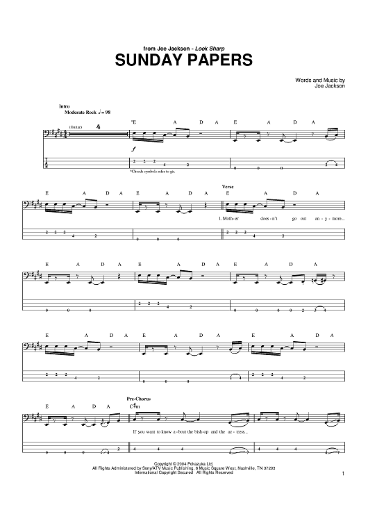 Digital Sheet Music for Sunday Papers by Joe Jackson scored for Bass Tab; id:383174