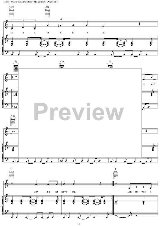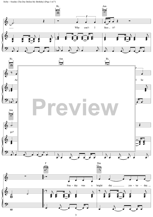 "Sunday (The Day Before My Birthday)" Sheet Music by Moby