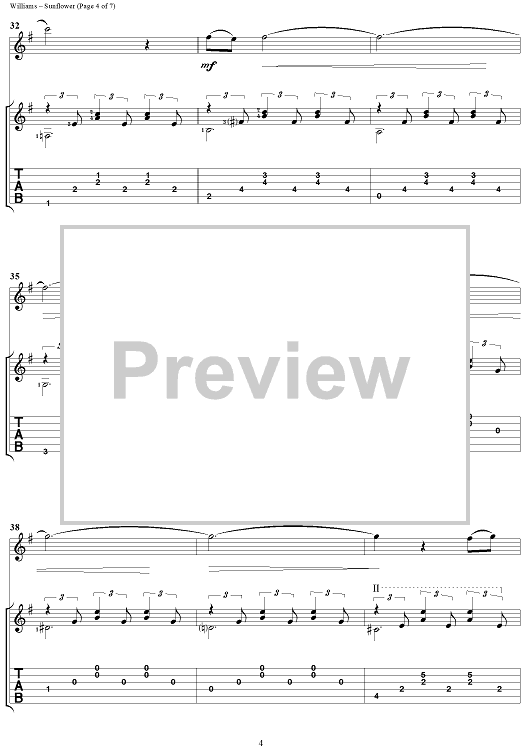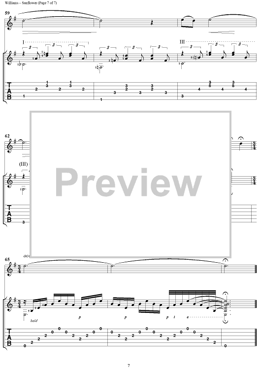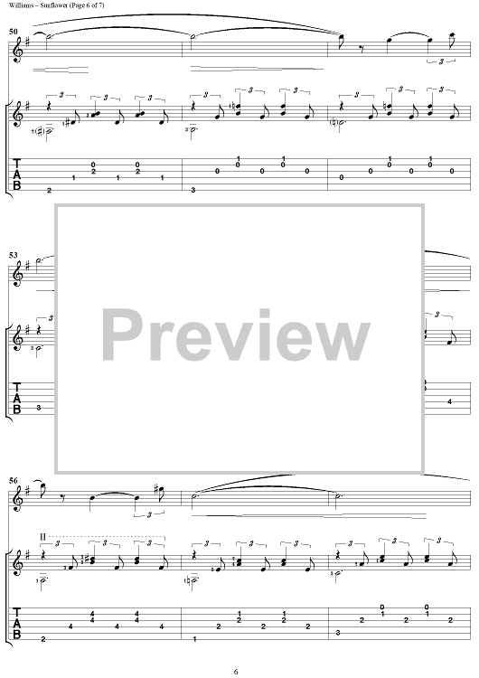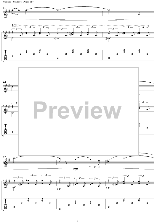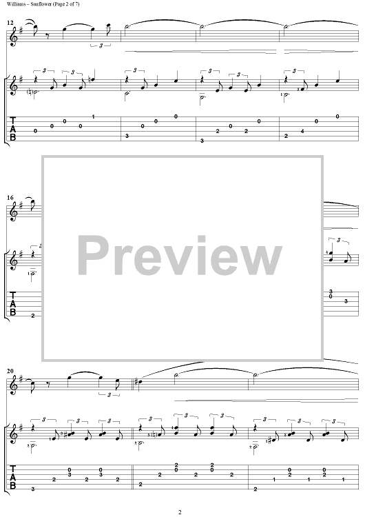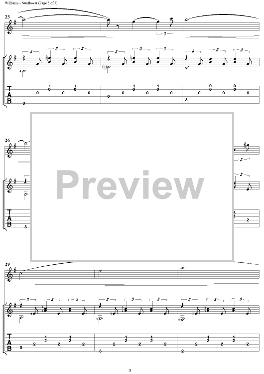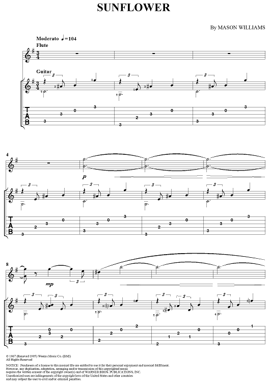 Digital Sheet Music for Sunflower by Mason Williams scored for Guitar Tab/Flute; id:304382