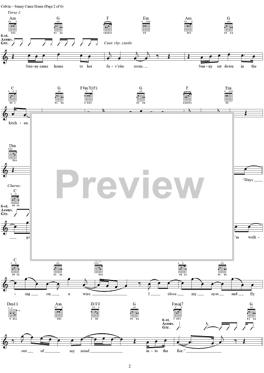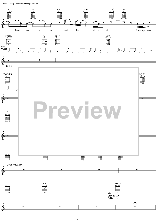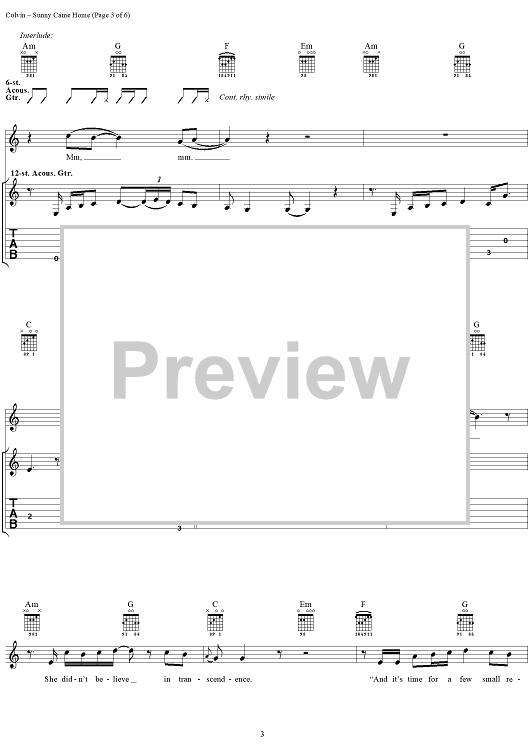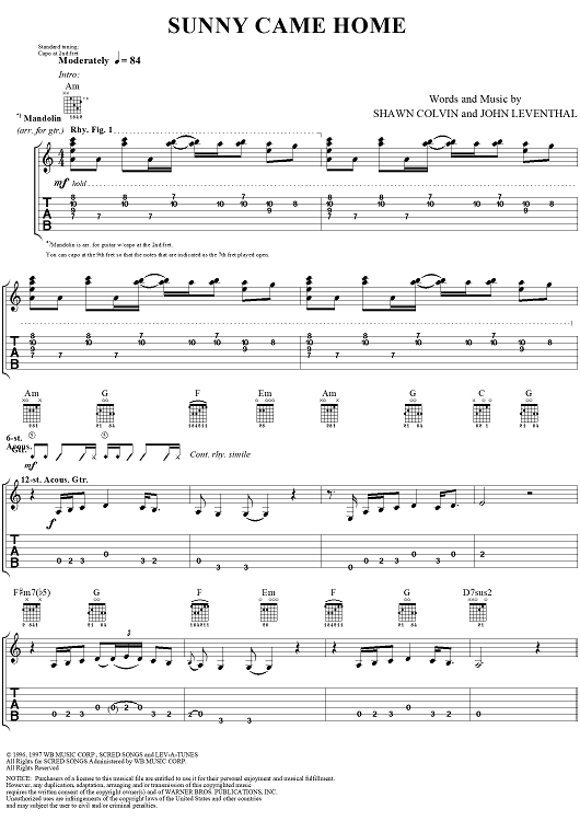 Digital Sheet Music for Sunny Came Home by Shawn Colvin, John Leventhal scored for Guitar Tab/Vocal; id:236032