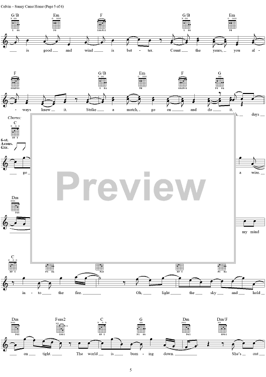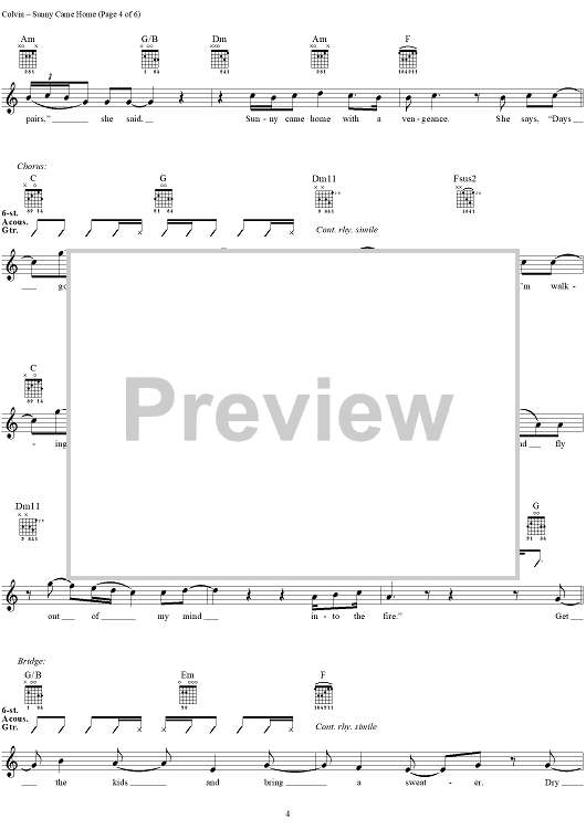 "Sunny Came Home" Sheet Music by Shawn Colvin