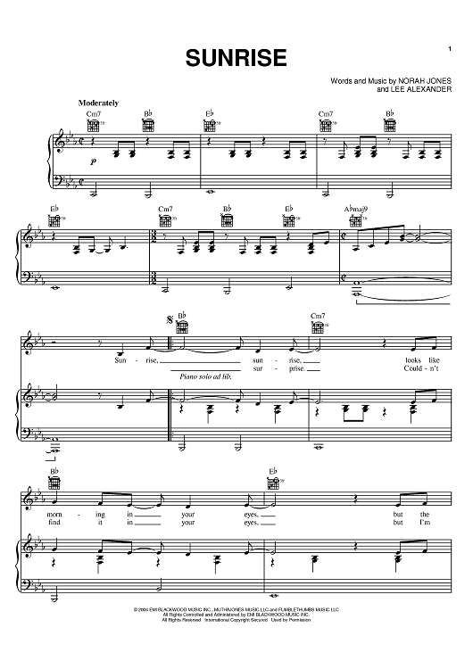 Digital Sheet Music for Sunrise by Norah Jones, Lee Alexander scored for Piano/Vocal/Chords; id:374583