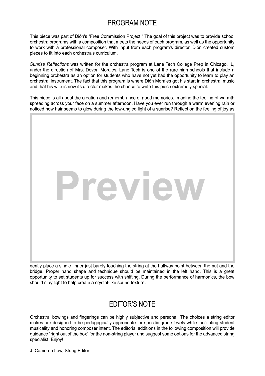 Digital Sheet Music for Sunrise Reflections - Full Score by Dion Morales scored for String Orchestra; id:507281