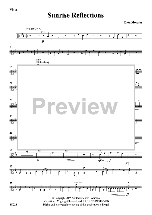 Digital Sheet Music for Sunrise Reflections - Viola by Dion Morales scored for String Orchestra; id:507284