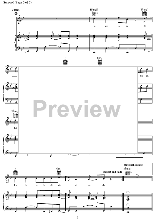 Digital Sheet Music for Sunroof by Dazy, Nicky Youre, Aidan Rodriguez scored for Piano/Vocal/Chords; id:497874