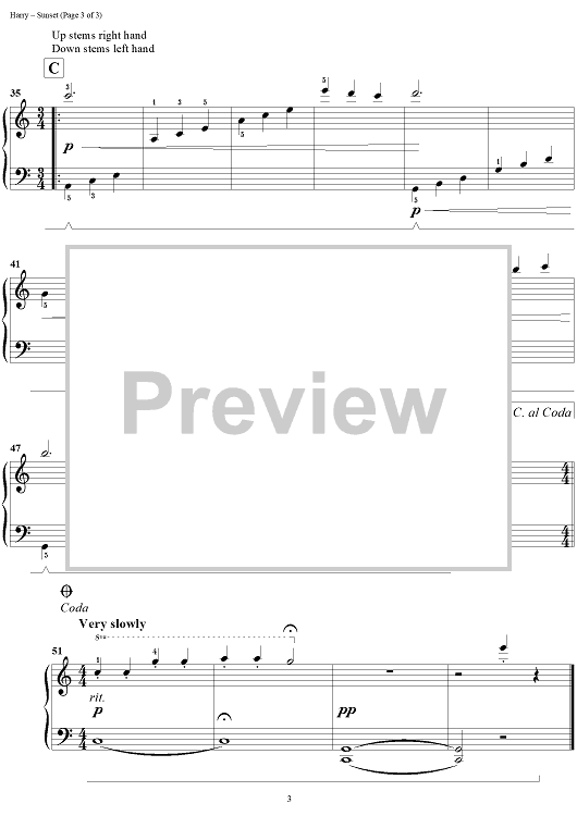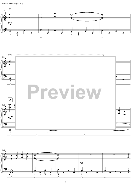 Digital Sheet Music for Sunset by Barbara Harry scored for Piano Solo; id:292864