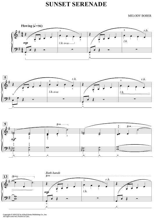 Digital Sheet Music for Sunset Serenade by Melody Bober scored for Piano; id:457625