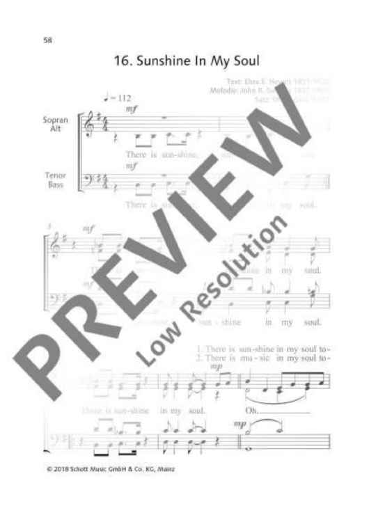 Digital Sheet Music for Sunshine in my Soul by John R. Sweney, Oliver Gies scored for Mixed Choir (satb) A Cappella; id:493457