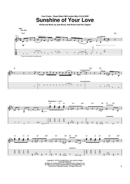 Digital Sheet Music for Sunshine Of Your Love by Eric Clapton, Cream, Pete Brown, Jack Bruce scored for Guitar Tab; id:392546
