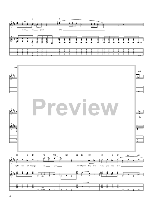 "Sunshine Of Your Love" Sheet Music by Eric Clapton
