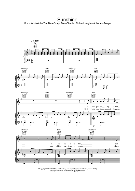 Digital Sheet Music for Sunshine by Keane scored for Piano/Vocal/Chords; id:378461