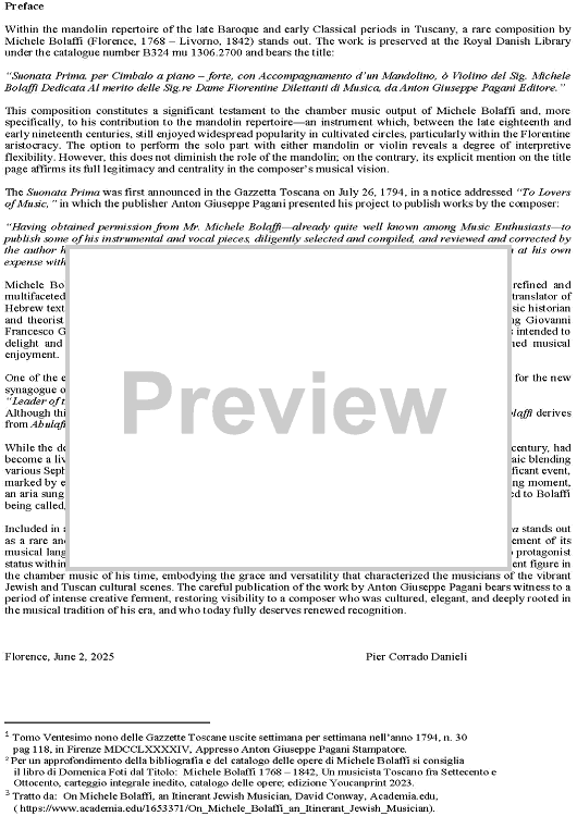 Digital Sheet Music for Suonata prima Per Mandolino e Cembalo - Harpsichord Score by Franco Pisciotta, Michele Bolaffi scored for Mandolin and Harpsichord; id:506148
