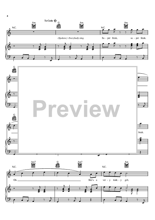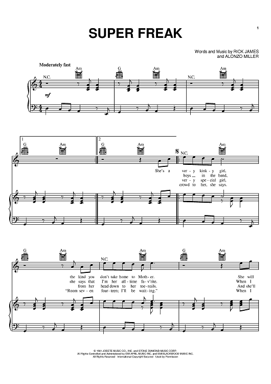 Digital Sheet Music for Super Freak by Rick James, Alonzo Miller scored for Piano/Vocal/Chords; id:368985